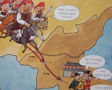 1차 침입으로부터 불과 2년 뒤인 1361년, 홍건적은 중국에서 다시 세력이 커지자 모거경과 반성(潘誠) 등 10여 명의 장군이 이끄는 10만 대군을 이끌고 다시 압록강을 넘어 고려를 침략했습니다. 이때 고려는 1차 침입의 교훈을 잊고 방어에 소홀했던 탓에, 홍건적의 침입에 제대로 대응하지 못했습니다.